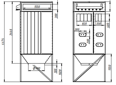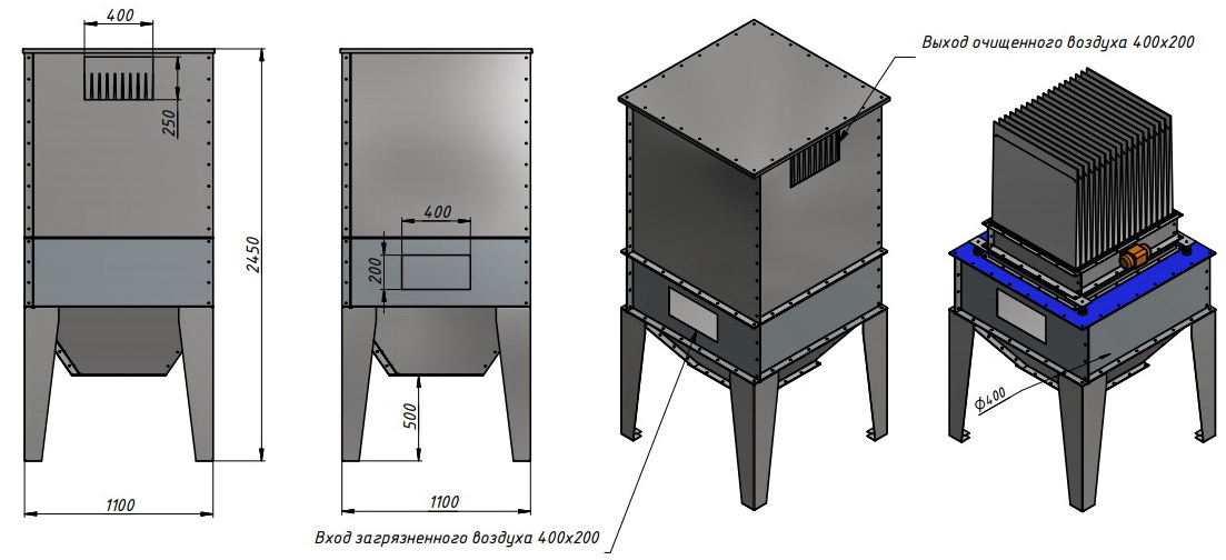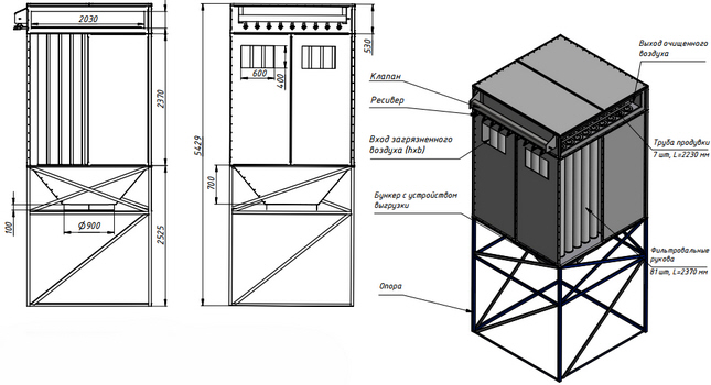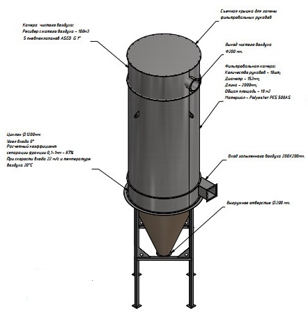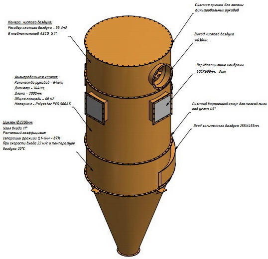 - Номинальная масса фильтруемой пыли - 1450 кг/час;